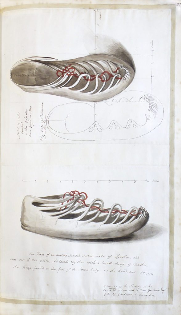 Another example that fascinated us is the Amcotts Moor Woman, the name given to a bog body discovered in 1747 near Amcotts, Isle of Axeholme. She likely lived sometime between 200 and 400 C.E, in the late Roman period, and is famous for the well-preserved footwear found with her body.