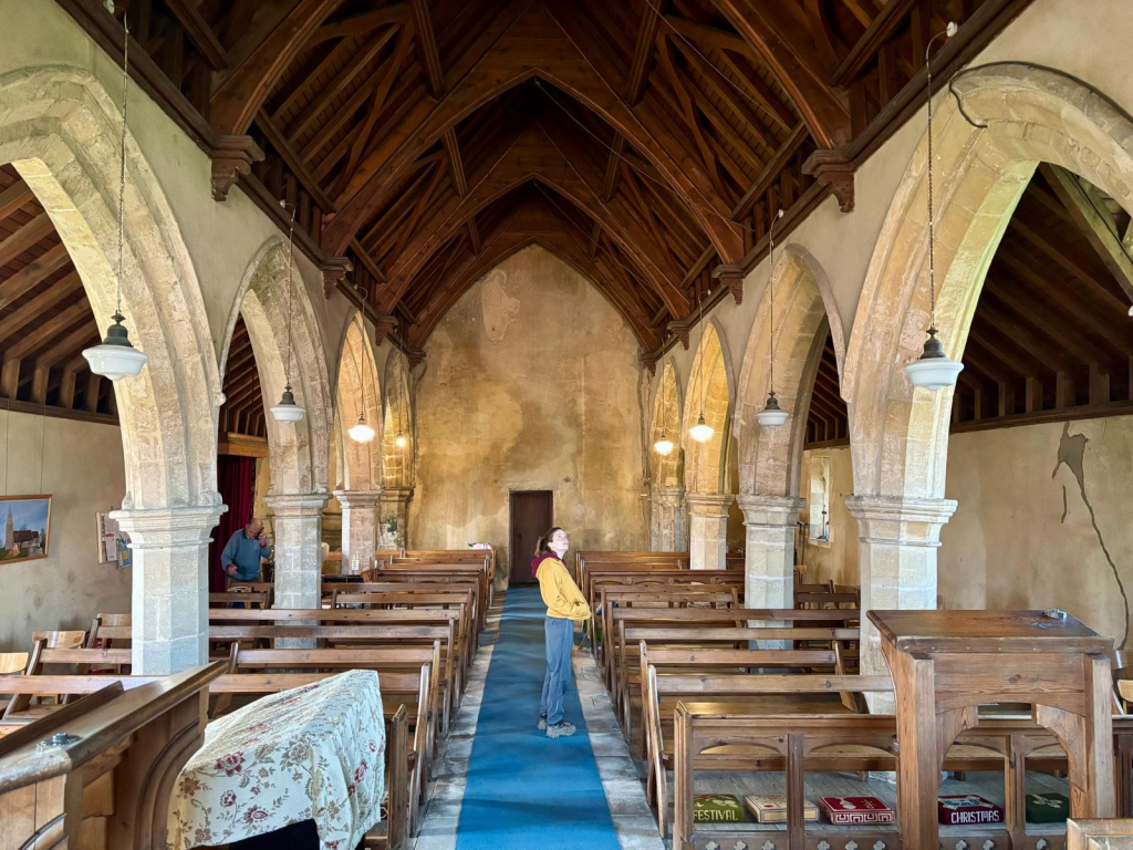 St James’s dates from the twelfth century, and has a fourteenth-century tower that leans approximately five degrees, more than the Leaning Tower of Pisa. Nobody knows when it started to lean, but it is stable, and has subtly been pinned in place to prevent it from falling over. The church isn’t always open, but if you can get inside (locals will often help) you’ll notice that most of the columns and walls aren’t especially vertical either.