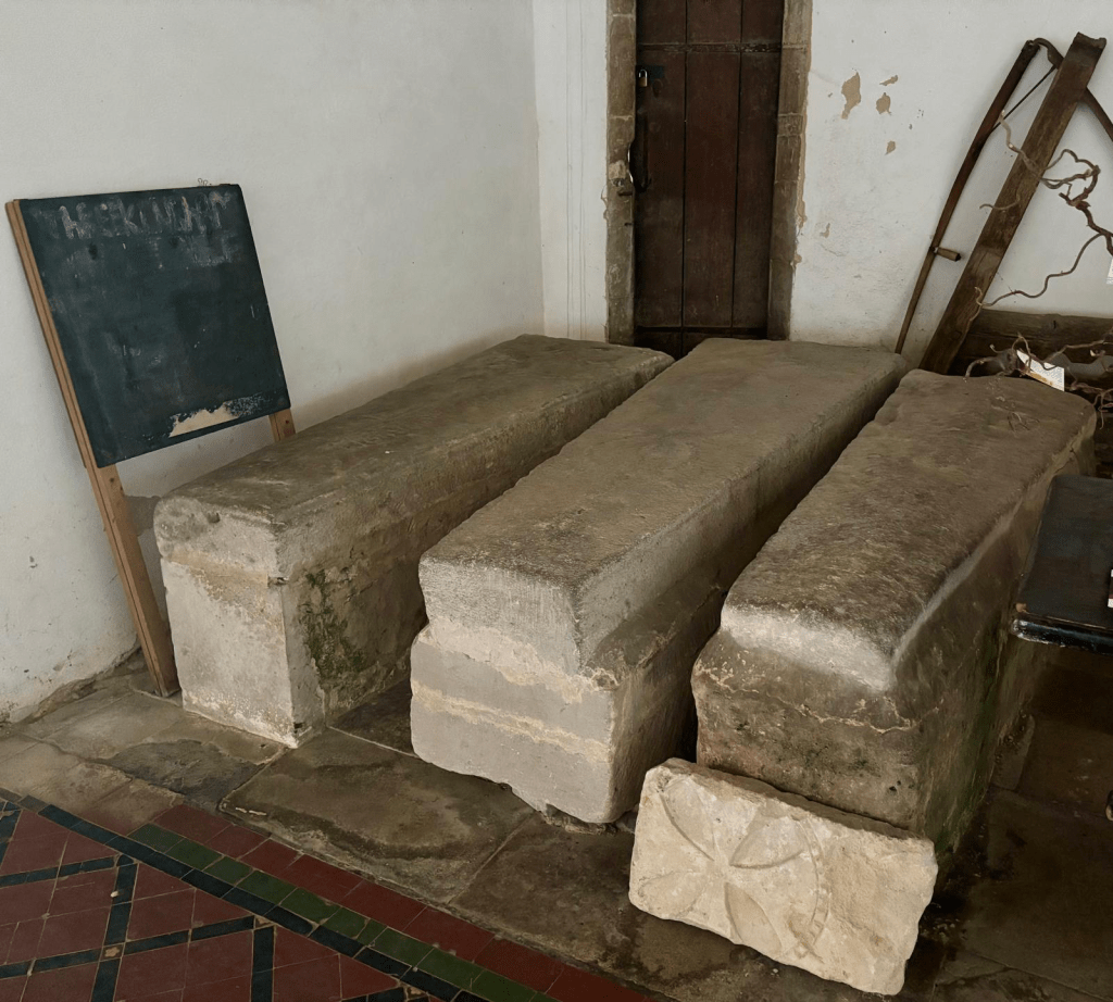 Just inside the entrance to St Peter’s church are the unlabelled and uninscribed fourteenth-century tombs of three members of the Trikingham family, descendants of Sir Lambert de Trikingham (d. 1280), and once the principal landowners. These tombs may have helped to keep this etymological origin myth well fed.